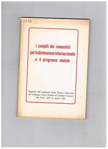 I compiti dei comunisti per la distensione internazionale e il progresso sociale. Rapporto di Longo e intervento di Pietro Secchia al C. C. del Pci dell'11 aprile 1954.