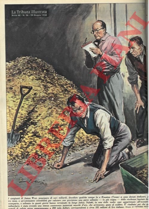 I congiunti di James West, possessore di vari miliardi, deceduto qualche tempo fa a Houston (Texas) si sono dovuti dedicare, per tre mesi, a un'estenuante contabilità per valutare con precisione una parte soltanto delle ricchezze lasciate dallo scomparso.Infatti, in una delle molte case appartenute all'eccentrico miliardario è stata trovata una stanza contenente numerosi mucchi d'oro, che arrivavano quasi al soffitto. .