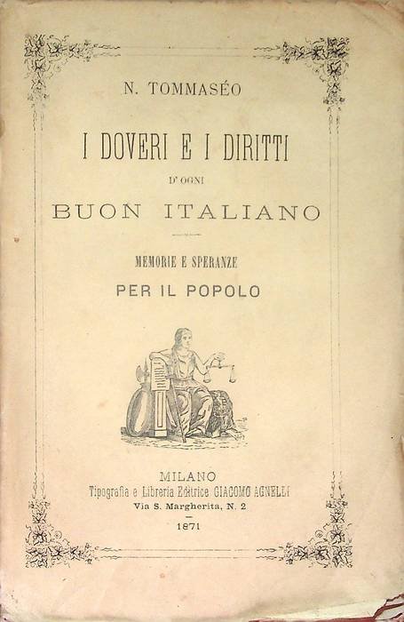 I doveri e diritti d'ogni buon italiano: memorie e speranze per il popolo. | Rare and modern books | Tommaseo, Niccolã².