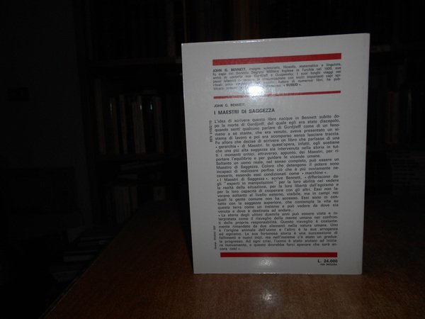 J.G. BENNETT. Roma, Edizioni Mediterranee, 1989. I Maestri di SAGGEZZA. Traduzione di Alessandro Staiti. In-8°, br. ill. a col. 212 pp. Come nuovo. Uff. stanzetta mob. a sinistra