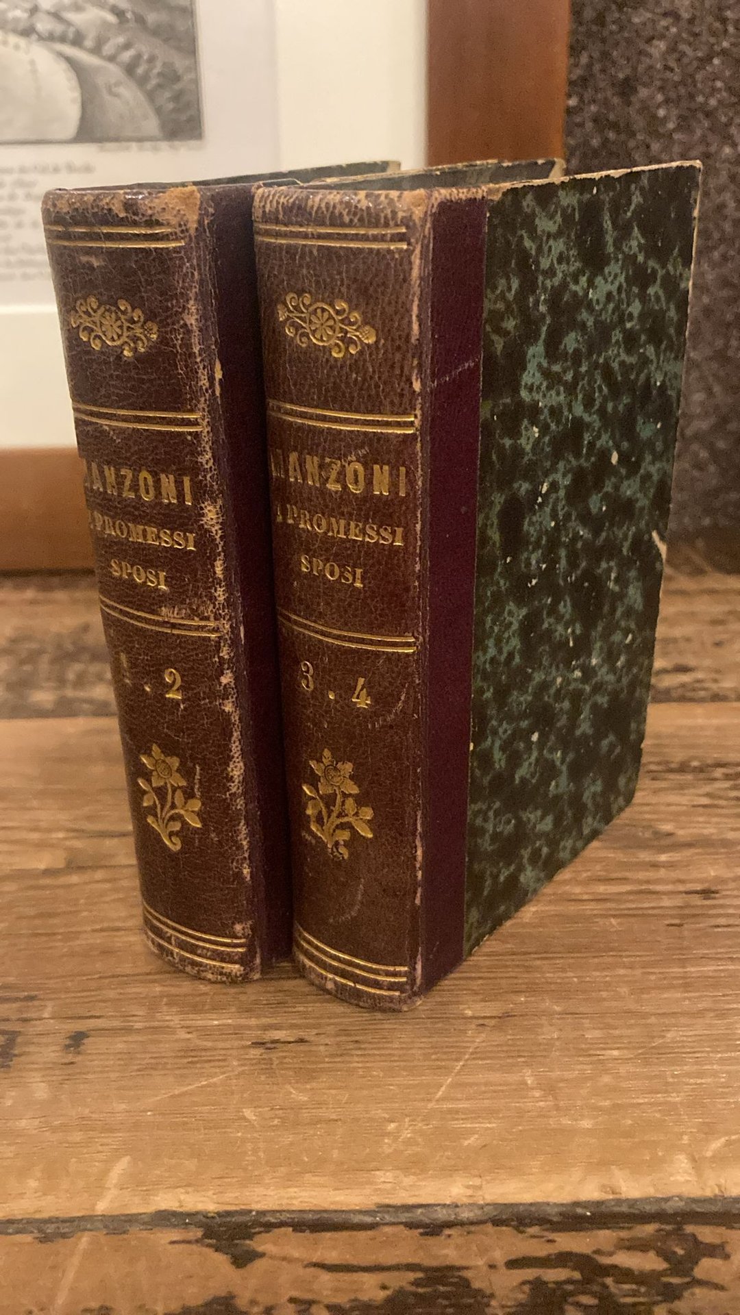Quattro volumi in-24° (12.5x8 cm) pp. 239 (1); 268; 286 (2) bianche; 245 (1), legati in due tomi in mezza pelle coeva marrone con titoli, fregi floreali e e tomaisons dorate ai dorsi, piatti carta marmorizzata. Lievemente rifilato in testa ma più che buon esemplare. Non comune stampa maltese preceduta da un discorso preliminare di Niccolò Tommaseo.