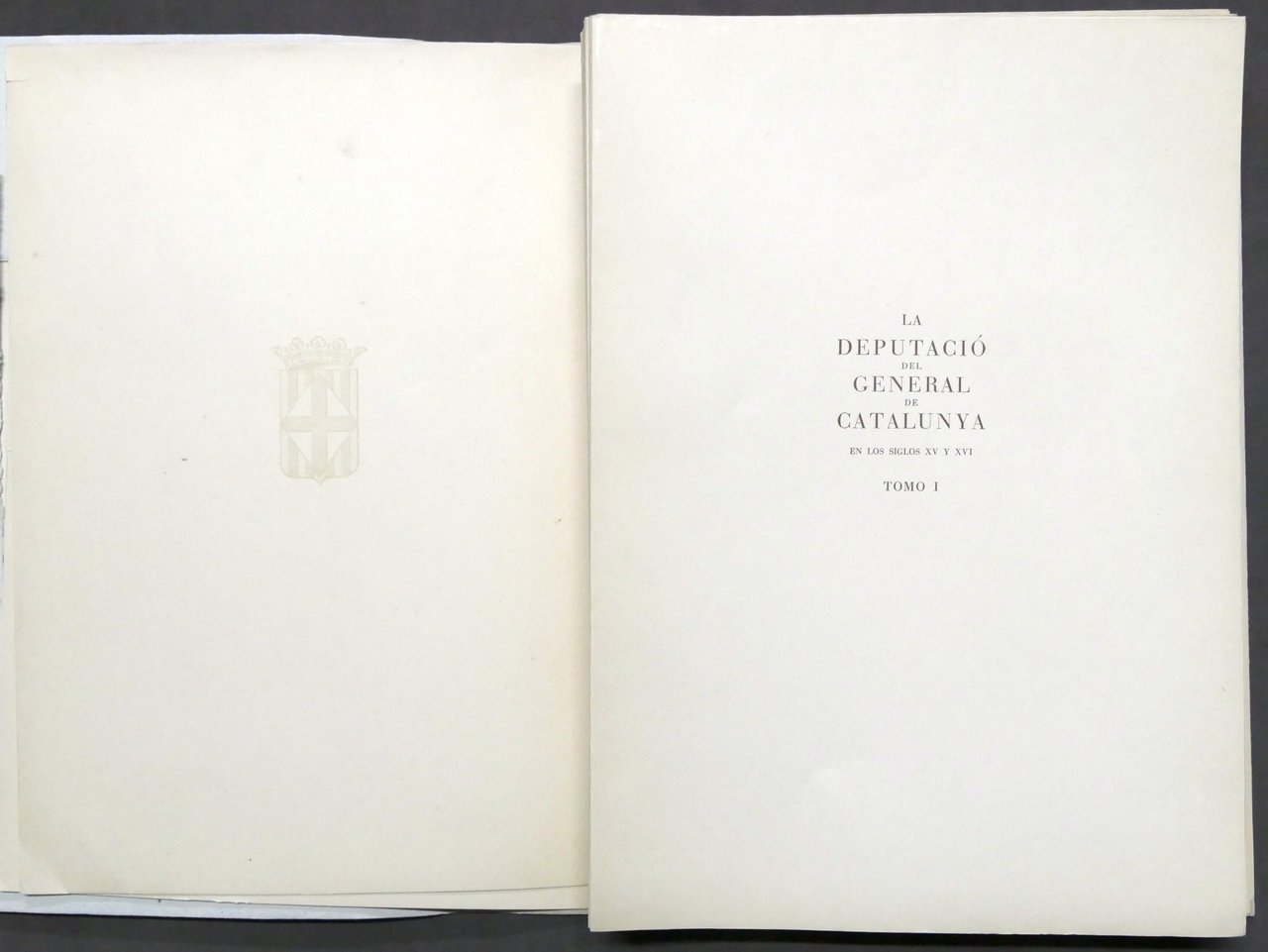 Dr. Ignacio Rubio y Carbonero - La Deputació del General de Catalunya en los siglos XV y XVI - ed. 1950 Opera completa in due volumi Tomo I: 423 pagine non rilegate - Tomo II: 362 pagine non rilegate. Illustrazioni nel testo e tavole fuori testo. Copertina morbida - Testo in spagnolo. Condizioni generali molto buone. Con cofanetti.