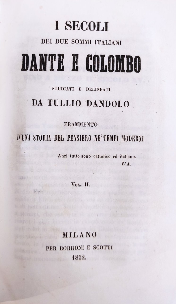 I SECOLI DEI DUE SOMMI ITALIANI. DANTE E COLOMBO