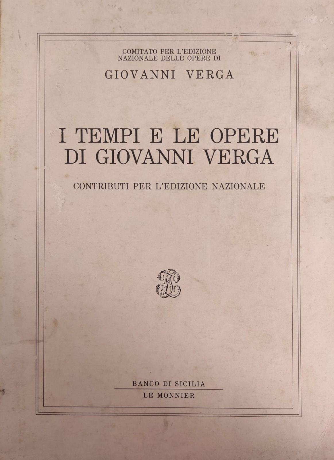 I TEMPI E LE OPERE DI GIOVANNI VERGA. CONTRIBUTI PER L'EDIZIONE NAZIONALE