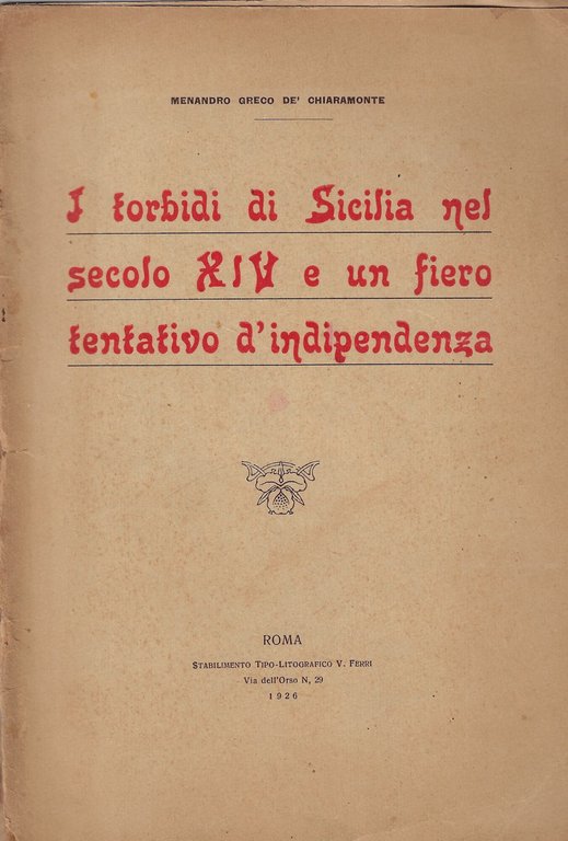 I torbidi di Sicilia nel secolo 14. e un fiero tentativo d'indipendenza