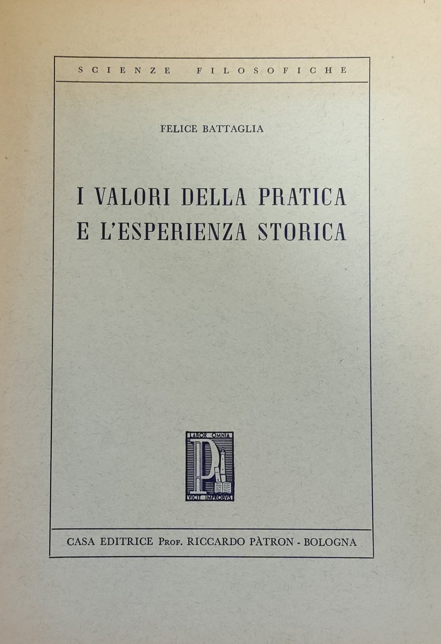 I VALORI DELLA PRATICA E L' ESPERIENZA STORICA