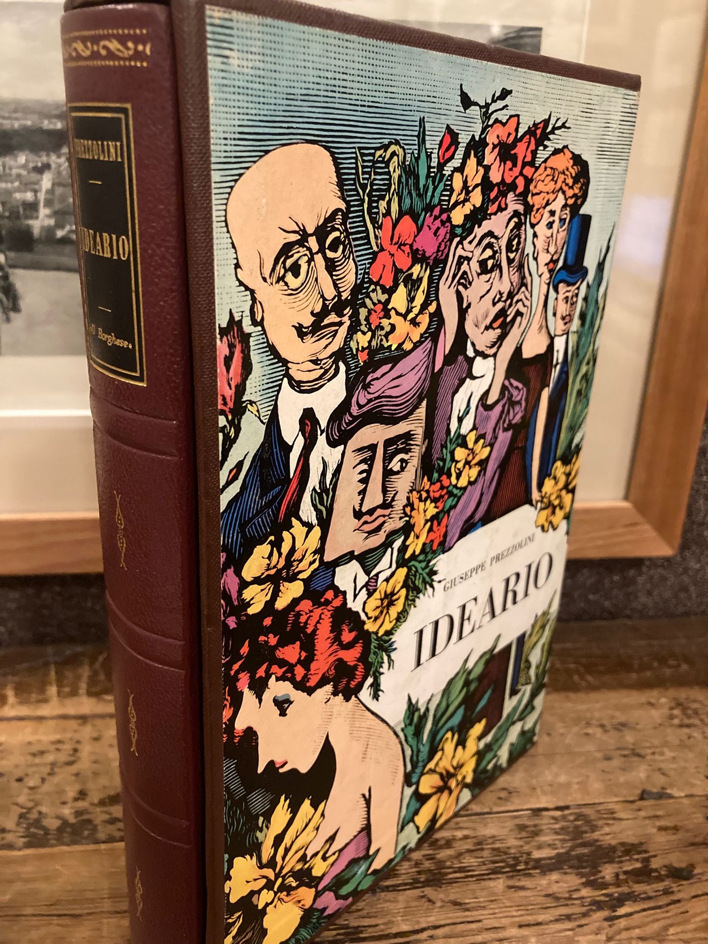In-8° (24x17 cm), pp. 241 (7), mezza pelle editoriale bordeaux con titoli dorati su tassello al dorso, custodia in tela rigida figurata a colori. 19 tavole illustrate a colori fuori testo con discalia esplicativa al piede del verso, figure b/n. Europa vecchia e nuova, 9. Ottimo esemplare nella tiratura di testa numerata con firma autografa dell' autore al verso dell' occhiello (n°46/200). Non comune (in questa tiratura di testa) autoantologia di frammenti, pensieri, aforismi - la maggior parte dei quali bisognerebbe in gran parte cercare in vecchi periodici e rare edizioni - ordinati in ordine alfabetico e impaginati su due colonne. Bibliografia (anzi autobibliografia) e indice suppletivo degli argomenti.