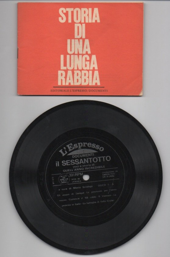 PERIODICOEdizione originale.Supplemento al n. 47 dell’Espresso, 1980. Raccolta di 6 dischi che contengono ampio materiale sonoro (dalle canzoni agli annunci in radio) relativo al 1968.