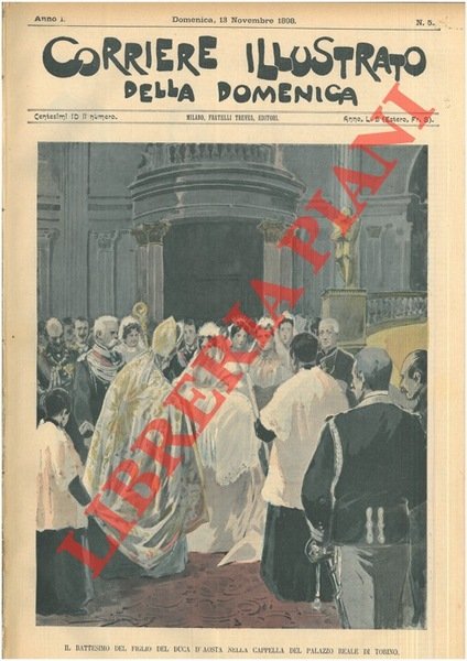 Il Battesimo del figlio del Duca d'Aosta nella cappella del Palazzo Reale di Torino.