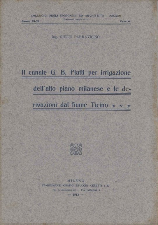 Il canale G. B. Piatti per irrigazione dell'alto piano milanese e le derivazioni dal fiume Ticino (2 Fascicoli)