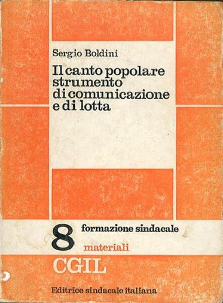 252 p. , 21 x 15 cm. Formazione sindacale. Materiali, 8. Questo libro nasce dall'esigenza di uno studio critico sull'eredita della canzone popolare in Italia analizzata come strumento di lotta e di comunicazione adeguata agli obiettivi di portata strategica che la classe lavoratrici prospetta e persegue, e quindi all'esigenza di diffondere, di socializzare, il proprio messaggio di liberazione. . Brossura editoriale, coperta in cartoncino flessibile colorato e plastificato. Alcuni segni del tempo alla coperta, pagine interne ingiallite, per il resto libro integro. Codice libreria 7342.