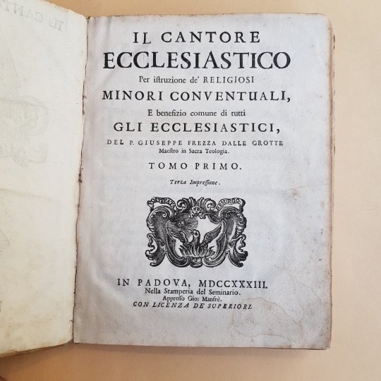 Il cantore ecclesiastico. Per istruzione de' religiosi minori conventuali, e benefizio comune di tutti gli ecclesiastici del P. Giuseppe Frezza dalle Grotte, maestro in sacra teologia. Tomo primo (unico pubblicato), terza impressione.