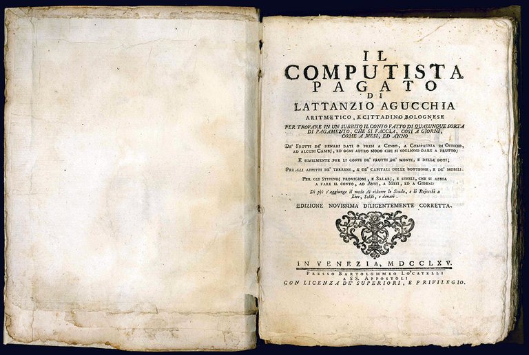 Il computista pagato di Lattantio Agucchia aritmetico, e cittadino bolognese per trovare in un subbito il conto fatto di qualunque sorta di pagamento, che si faccia, cosi à giorni, come a mesi, ed anno ... Edizione novissima diligentemente corretta.