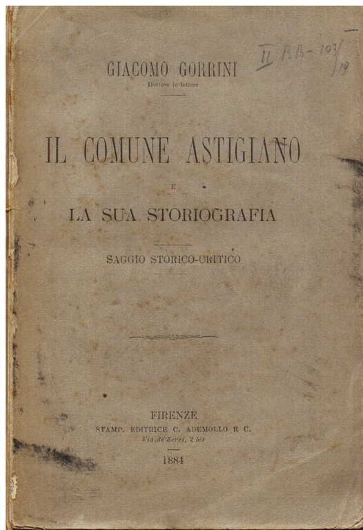 Il Comune Astigiano e la sua storiografia. Saggio storico - critico