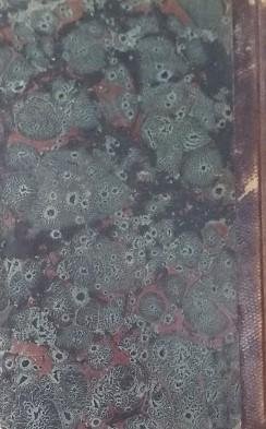 Copertina in cartonato marmorizzato, segni d'uso ai margini, dorso in pelle con titolo in caratteri dorati su du riquadri. Taglio tinto giallo, tracce di sporco e rari puntini rossi. Interno in buono stato, testo perfettamente leggibile e con qualche rara gora. A fine libro quattro tavole quasi interamente dipinte a mano.