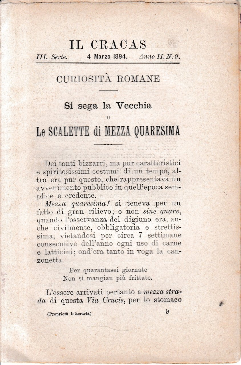 Il Cracas. Diario di Roma. Vol. 1. III serie, 4 Marzo 1894, anno II, n. 9