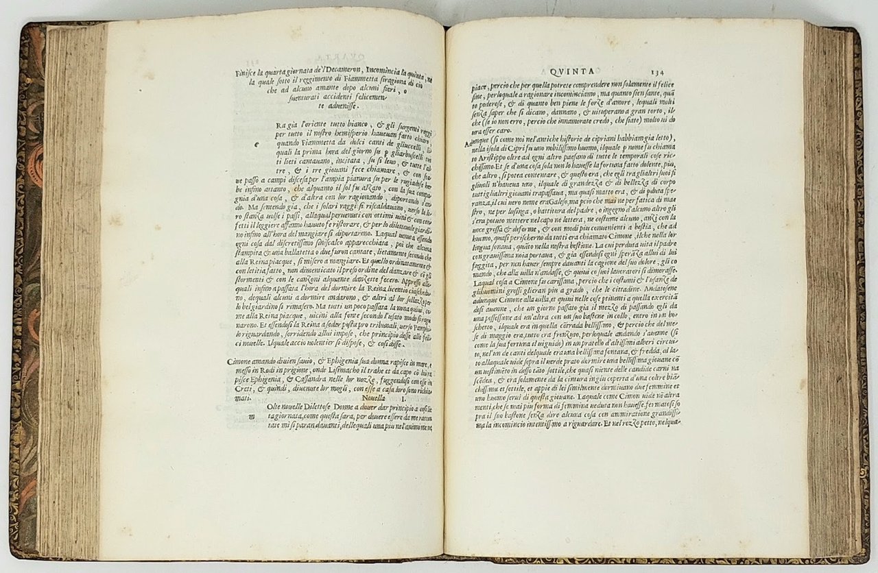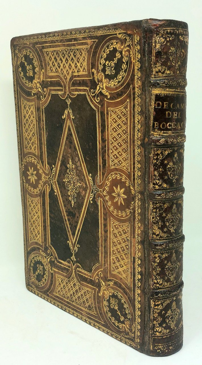>in-4 (237x165 mm), ff. (8, ult. b.), 248, impresa tipografica giuntina all'inizio ed in fine. Bella legatura intarsiata coeva, probabilmente romana, in pelle, con estesa e varia decorazione in oro al dorso a nervi ed ai piatti e (bordure varie, tondi ai piccoli ferri, intrecci lineari), tagli dorati e cesellati, dentelle int., sguardie in bella carta goffrata. Fedele contraffazione settecentesca impressa dal Pasinello per cura di Stefano Orlandelli, a spese di Joseph Smith, console inglese a Venezia nel 1729, tirata in soli 300 esempl. (Bacchi della Lega, p. 36, per probabile errore tip. parla di trenta esempl.). L'edizione 1527 si pose come versione universalmente riconosciuta del testo sino a quella del Manelli del 1761, divenendo un simbolo della libera repubblica fiorentina, in quanto, come ebbe a dire il Foscolo, quasi tutti coloro che vi lavorarono (Bernardo Segni, Pier Vettori, Baccio e Bartolomeo Cavalcanti, Francesco Guidetti) morirono combattendo contro i Medici. La mitica rarità di quell'edizione indusse il Console Smith a finanziare nel 1729 questa preziosa contraffazione. Bellissimo esemplare, marginoso (restauri alle cerniere).