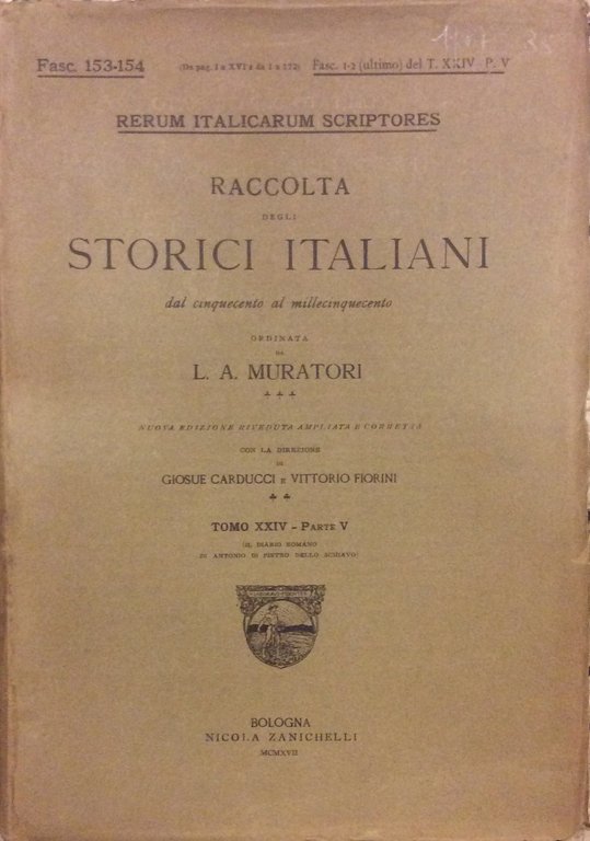 IL DIARIO ROMANO. - Dal 19 ottobre 1404 al 25 settembre 1417. A cura di Francesco Isoldi. Rerum Italicarum Scriptores di L.A. Muratori - Tomo XXIV, p. V.