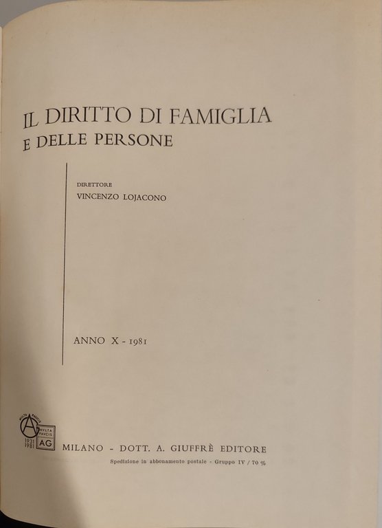 Il diritto di famiglia e delle persone. Anno X- 1981
