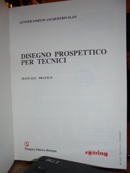Gunter Anselm - Jacques Rivalan. Bologna, Pitagora Editrice, 1984. Il Disegno prospettico per tecnici. In-8° grande, cartonato edit. ill. a col. con sovracopertina in acetato. 218 pp. con numerose illustrazioni n.t. 2 timbretti di ex proprietà ma in ottimo stato di conservazione. Neg. esot. mob. 72. carc.