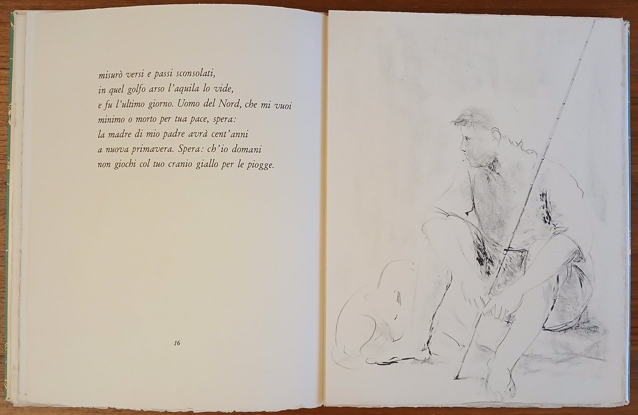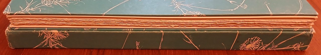 all’interno brossura in camicia con protezione in carta pergamino, pp. (2),48,(8) con sette litografie originali a piena pagina e sei fregi che precedono i testi, terminata la stampa nel mese di settembre 1954, le pietre litografiche sono state levigate.