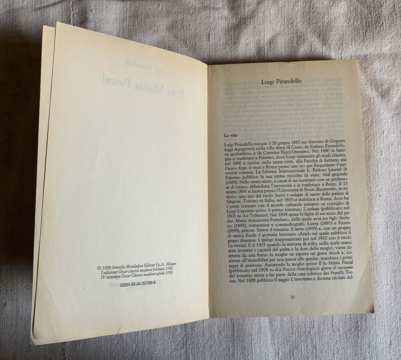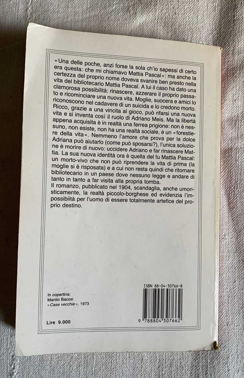 IV ristampa/V ed. Oscar Classici moderni Mondadori: aprile 1990 (ed. originale: Roma, «La Nuova Antologia», aprile-giugno 1904; poi edito da «La Nuova Antologia», Roma 1904 - I ed. Oscar classici moderni Mondadori: febbraio 1998). Classici moderni Oscar Mondadori 1. VIII/XIV+246=260/brossura in cartoncino bianco painato con grafica in granata e nero e con illustrazione a colori al primo piatto (In copertina: Manlio Bacosi « Case vecchie », 1973. Stato buono (lieve usura della copertina - copertina e pagine brunite - qualche sottolineatura a matita nell'elenco dei titoli Oscar classici alla fine del volume).