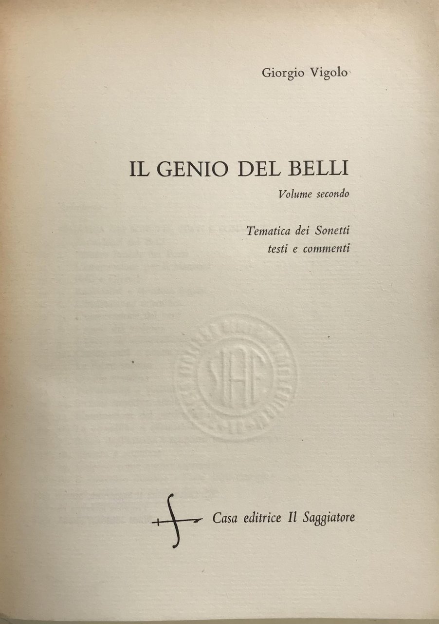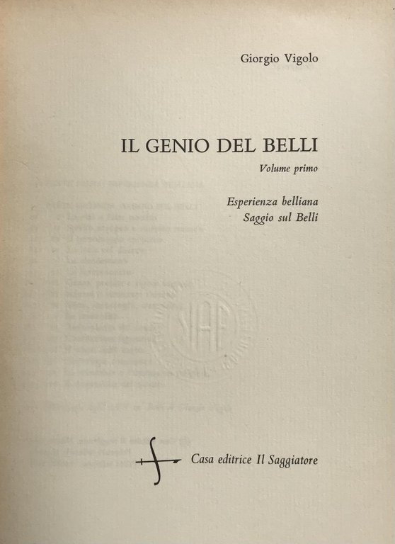 Vol. I: Esperienza belliana. Saggio sul belli.