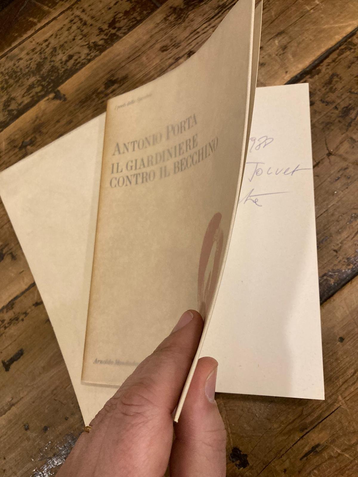 In-8° (21.5x16.5 cm), pp. 91,(5), brossura editoriale a risvolti paratestuali entro velina e con astuccio. I Poeti dello Specchio. Dedica autografa dell'autore alla prima carta bianca. Ottimo. Prima edizione.