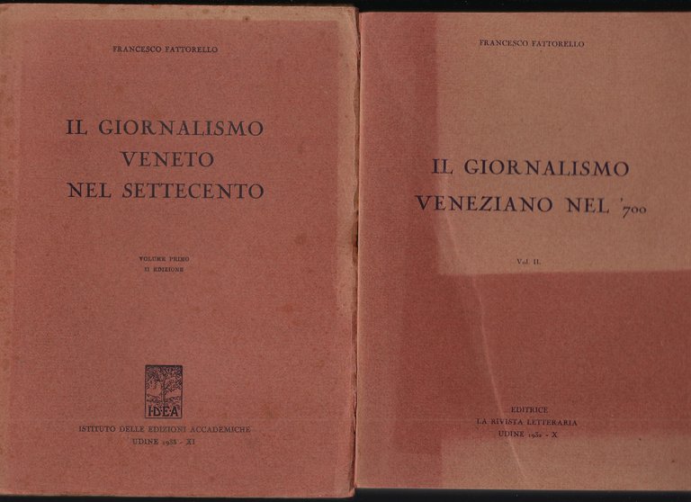 Interni senza strappi o parti mancanti. Il secondo volume presenta una nota di possesso alla sguardia ed altre fioriture.