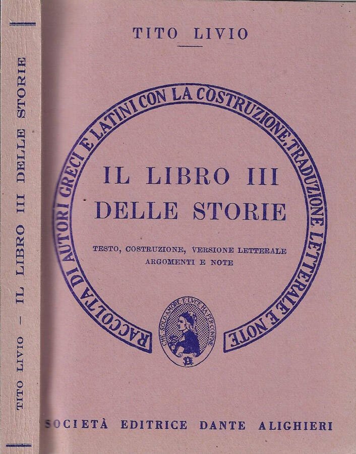 Libro III delle storie di Tito Livio. Brossura illustrata e leggermente ingiallita dal tempo presentante segni di usura da scaffale e da sfregamento. Volume con parti del testo il lingua latina. Pagine fruibili anche se ingiallite dal tempo e sporadicamente fiorite ai bordi esterni. Numero pagine 278.