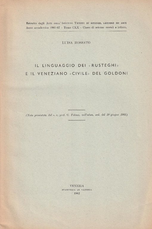 Il linguaggio dei "Rusteghi" e il veneziano "civile" del Goldoni