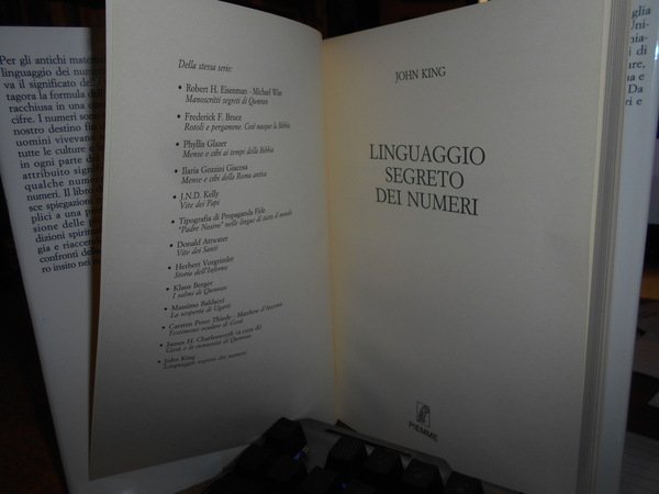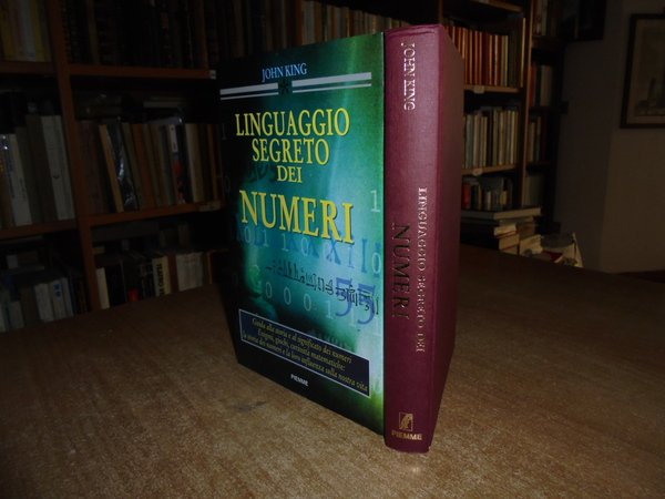 JOHN KING. Casale Monferrato, Edizioni Piemme, 1997. Il linguaggio segreto dei numeri. Guida alla storia e al significato dei numeri. Enigmi, giochi, curiosità matematiche: la storia dei numeri e la loro influenza sulla nostra vita. In-8°, tela edit. bordeaux con titolo in oro al dorso e sovracopertina ill. a col. 262 pp. con illustrazioni nel testo. Come nuovo. Uff. stanzetta mob. sinistra centro basso