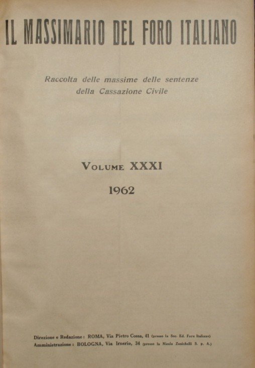 Il massimario del Foro italiano. Vol. XXXI - Anno 1962