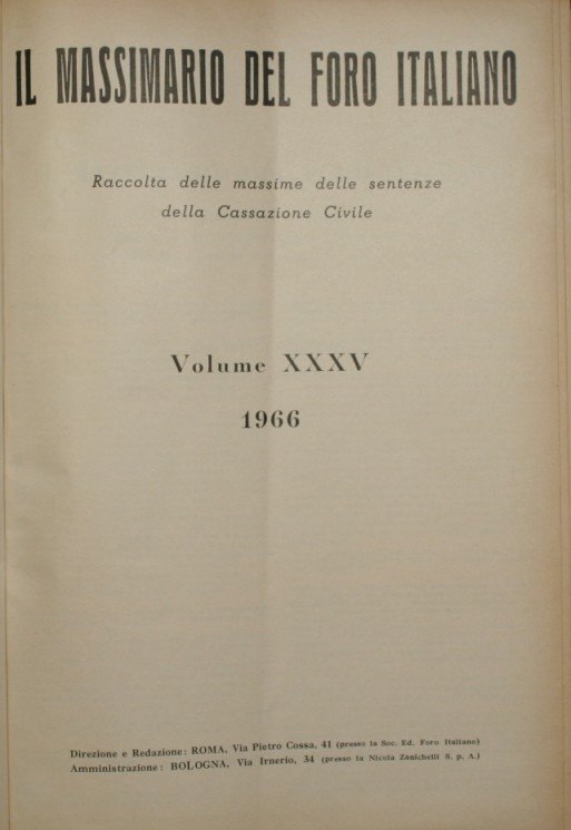 Il massimario del Foro italiano. Vol. XXXV - Anno 1966