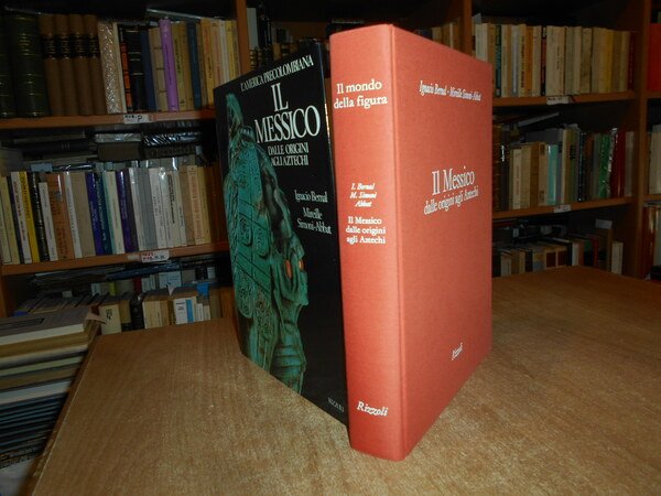 IGNACIO BERNAL-MIREILLE SIMONI ABBAT. Milano, Rizzoli Editore, 1987. Il Messico dalle origini agli Aztechi. In-4°, tela arancione con titoli bianchi, sovracopertina ill. a col. 457, (2) pp. con numerose illustrazioni fotografiche a colori e in bianco e nero anche a piena pagina e in tavole ripiegate. Come nuovo. Uff. stanzetta mob. a sinistra