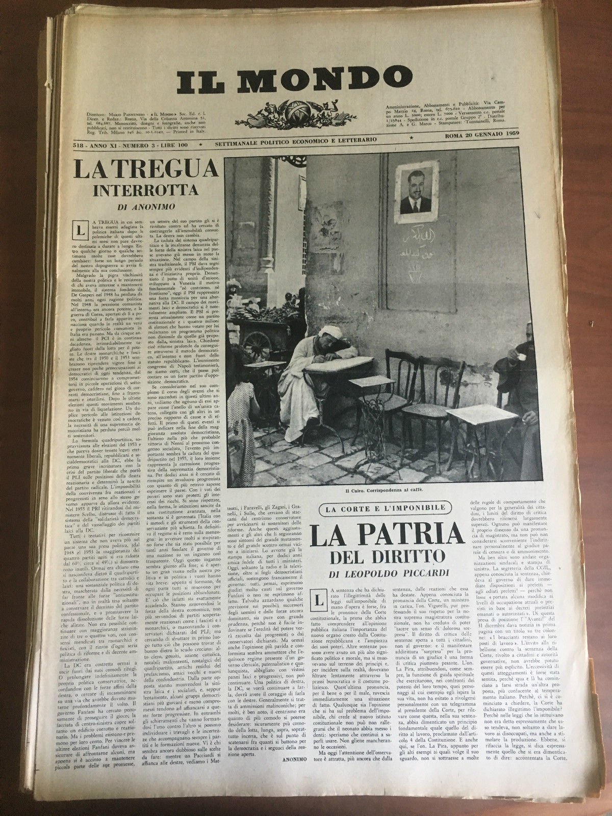 Il Mondo diretto da Mario Pannunzio Anno XI n^ 3 - 20 Gennaio 1959 - E22101