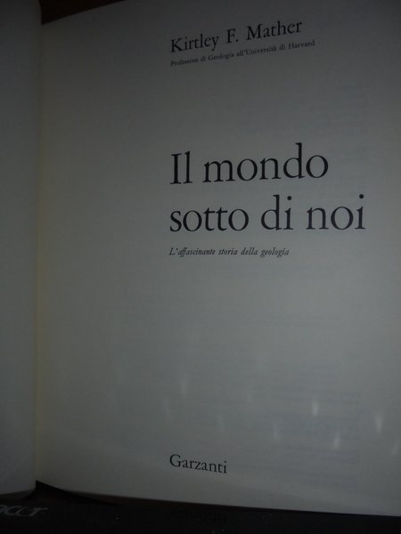 K.F. Mather. Milano, Garzanti Editore, 1969. Il Mondo sotto di noi. L' affascinante storia della Geologia. In-4°, tela edit. con titoli in oro al dorso, sovracopertina ill. a col. 318 pp. con numerose illustrazioni la maggior parte a colori anche a piena e doppia pagina. In ottimo stato di conservazione. Neg. mob. 15