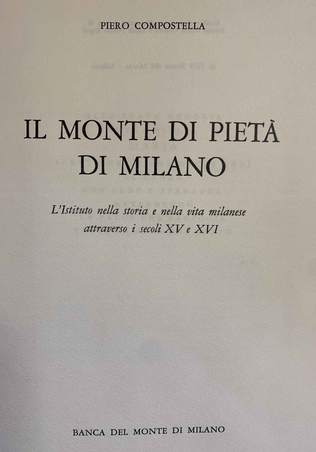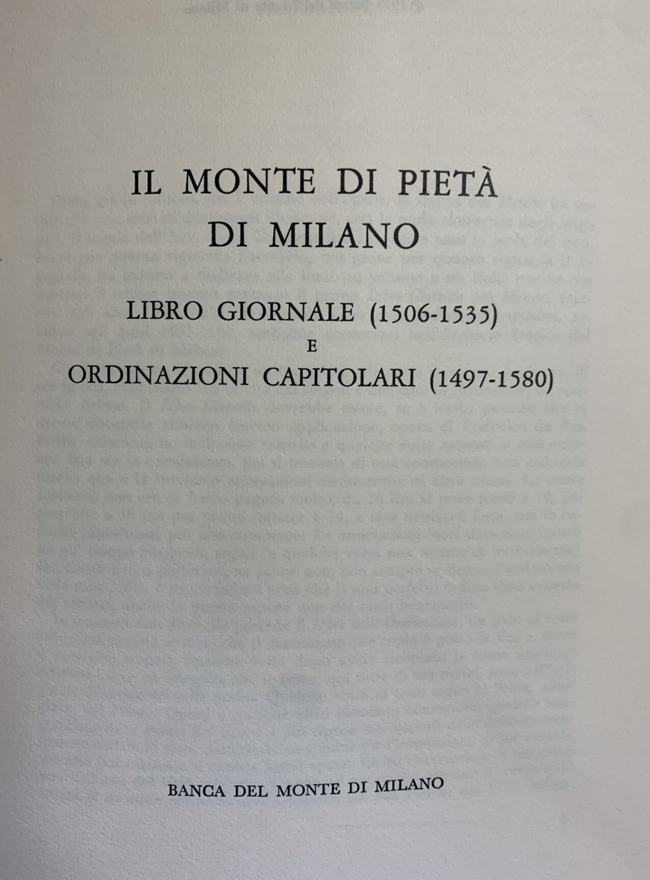 IL MONTE DI PIETA' DI MILANO. NELLA STORIA DELLA VITA MILANESE E ATTRAVERSO I SECOLI XV E XVI. seguito da LIBRO GIORNALE (1506-1535) e ORDINAZIONI CAPITOLARI (1497-1580)
