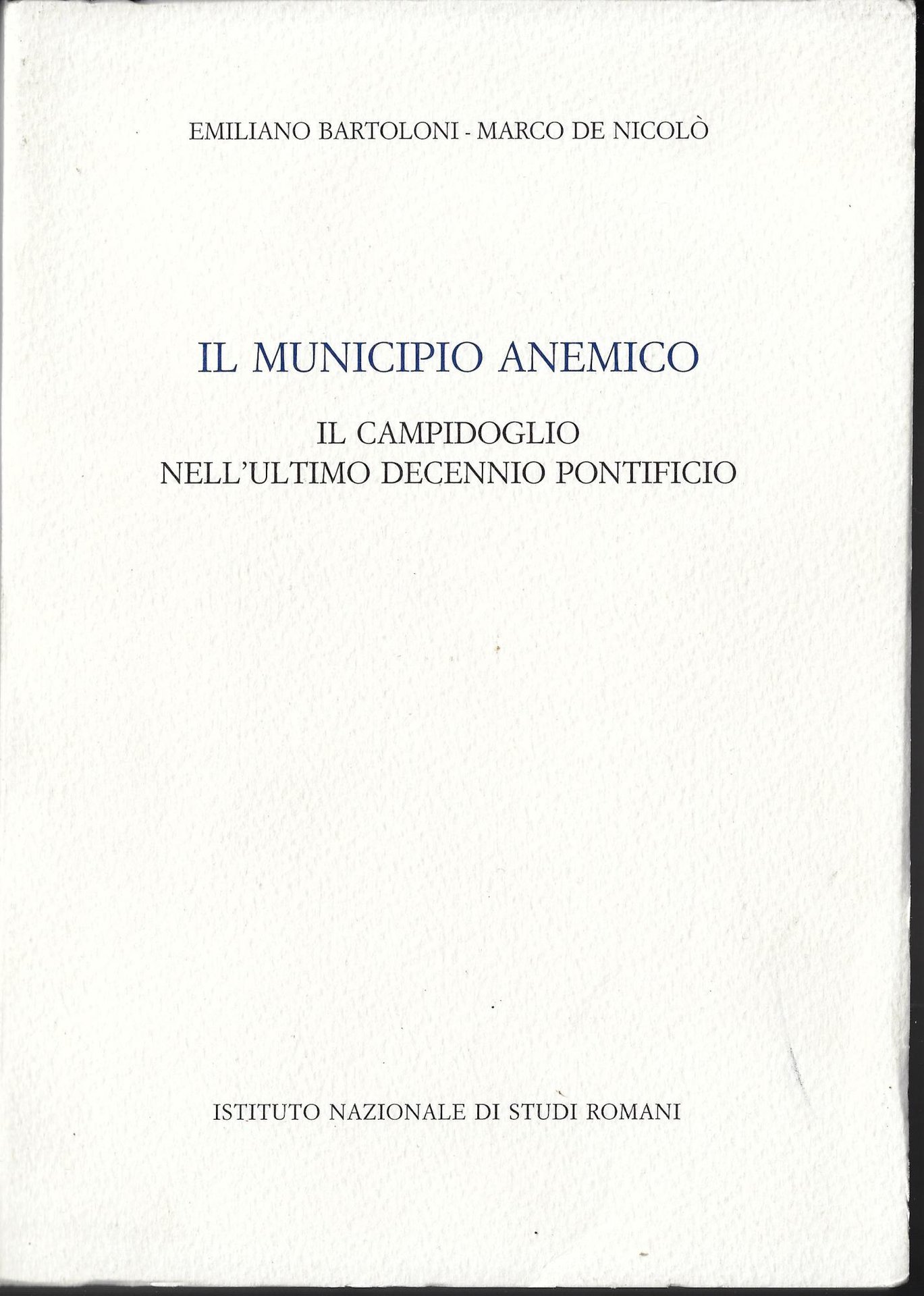 Il municipio anemico : il Campidoglio nell'ultimo decennio pontificio