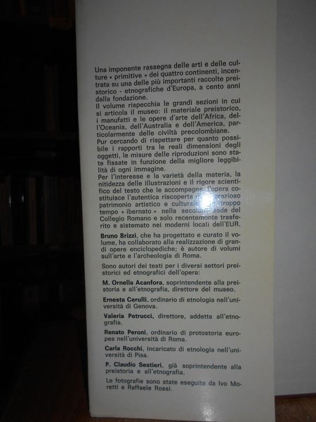 a cura di Bruno Brizzi. Testi di M. Ornella Acanfora. Ernesta Cerulli. Renato Peroni. Valeria Petrucci. Carla Rocchi. P. Claudio Sestieri. ROMA, Edizioni Quasar, 1976. IL MUSEO PIGORINI. In-4°, tela con titolo al dorso, illustrazione sul piano, sovracopertina ill. a col. 424, (1) pp. con 224 illustrazioni fotografiche a colori e in bianco e nero anche a piena pagina. Ottimo esemplare. Uff. stanzetta mob. a destra sotto