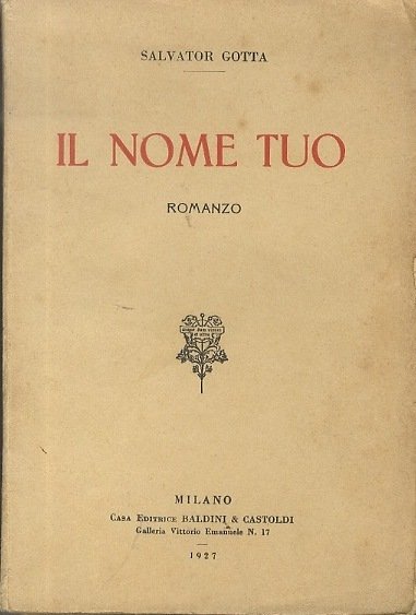 Il nome tuo: romanzo. | Rare and modern books | Gotta, Salvator.
