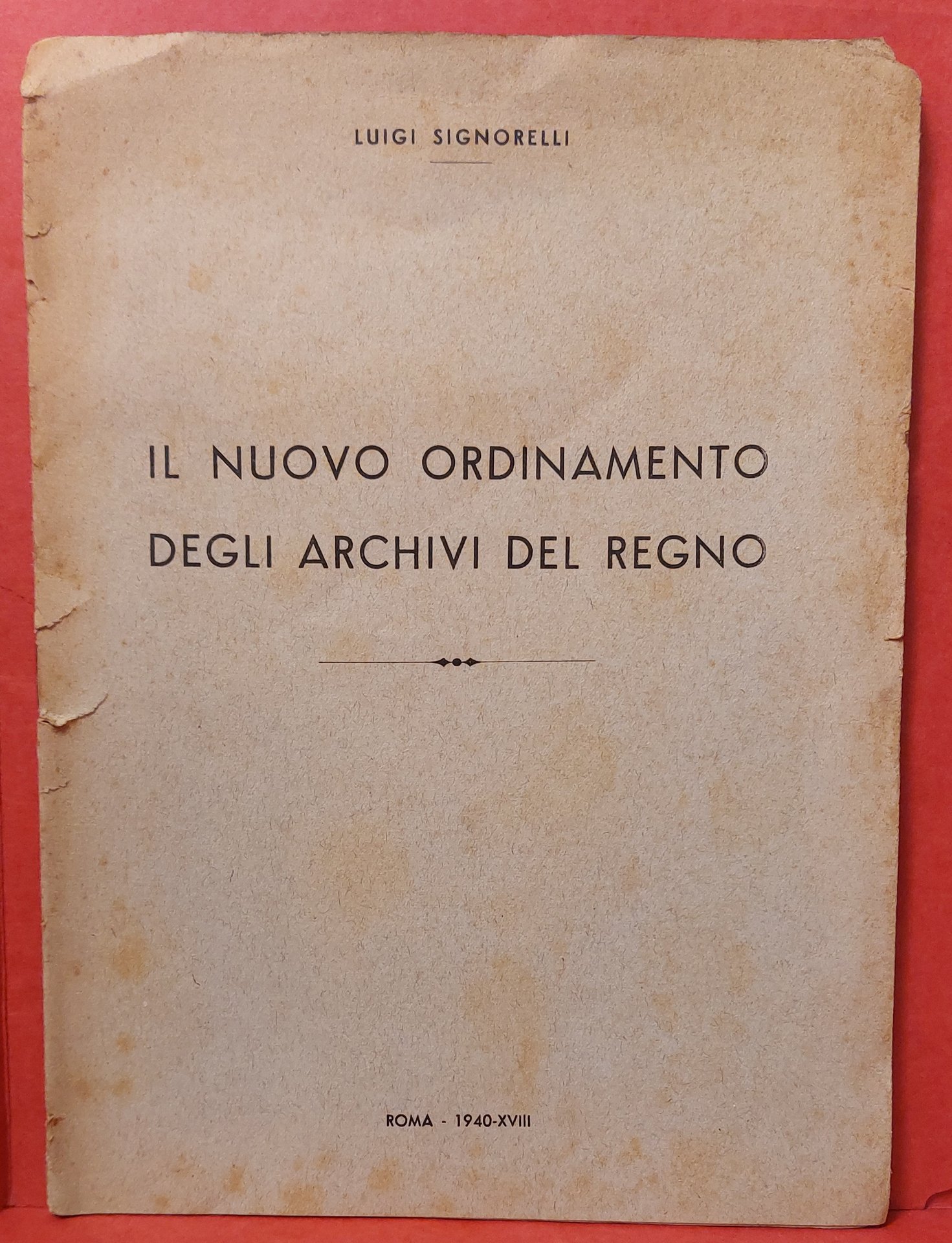 In 8° bross., pp.16, fascicolo estratto dagli Archivi d'italia e Rassegna Internazionale degli Archivi, Anno VI (1939) - Num.4. Presenta due strappi sul dorso che non incidono sulla lettura.