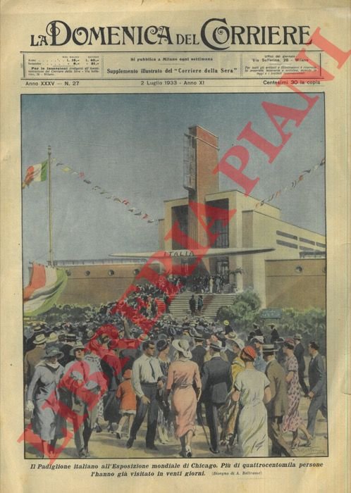 Milano, 2/07/1933, la sola copertina illustrata a colori, senza il fascicolo, della Domenica del Corriere.