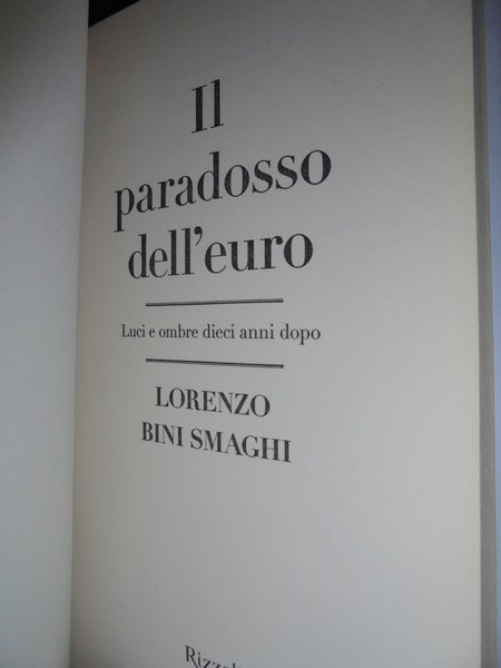 Il paradosso dell' euro. Luci e ombre dieci anni dopo. Lorenzo Bini Smaghi - Milano, Rizzoli editore, 2008. In-8°, cartonato con sovracopertina. 217 pp. Come nuovo. Neg. fot. mob. N