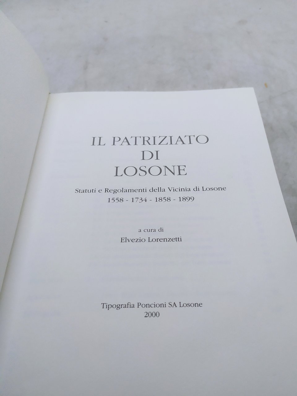 il patriziano di losone statuti e regolamenti della vicinia di losone 1558-1734-1858-1899. , italiano, pp.124 ^^^
