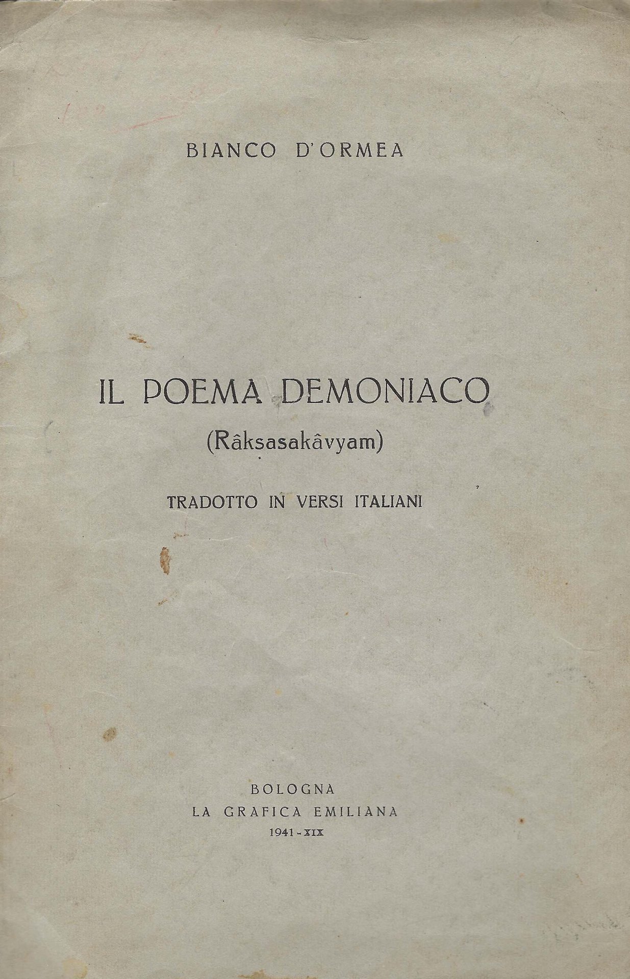 Il poema demoniaco | Rare and modern books | tradotto [dal sanscrito] in versi italiani [a cura di] Bianco D, ,tradotto [dal sanscrito] in versi italiani [a cura di] Bianco