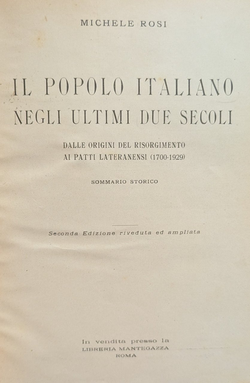 IL POPOLO ITALIANO NEGLI ULTIMI DUE SECOLI. DALLE ORIGINI DEL RISORGIMENTO AI PATTI LATERANENSI (1700 - 1929)