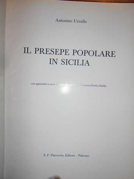 Antonino, Uccello. Palermo, Flaccovio Editore, 1979. Il Presepe Popolare in Sicilia. In-4°, tela edit. con titoli in oro al piano e sul dorso, doppia sovracopertina, una editoriale ill. a col. l' altra in acetato. 319 pp. con numerose illustrazioni la maggior parte in bianco e nero anche a piena pagina nel testo. Ottimo esemplare. Neg. mob. 14 alto.