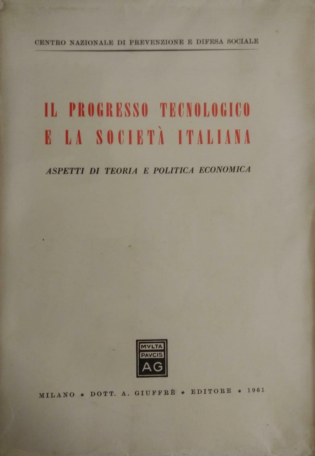 IL PROGRESSO TECNOLOGICO E LA SOCIETÀ ITALIANA. ASPETTI DI TEORIA E POLITICA ECONOMICA
