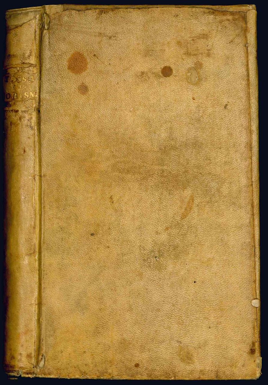 In 8vo (mm 178x110). Carte [8], 56. Segnatura: a8, A-G8. Marca tipografica del Palazzolo al frontespizio, fregi e iniziali incise in legno. Arrossature e fioriture, più evidenti sul titolo, volume un po' sciolto e parzialmente staccato dal dorso. Legatura del Seicento in piena pergamena rigida, titolo in oro su tassello al dorso, tagli spruzzati in rosso e marrone con titolo manoscritto su taglio inferiore (qualche macchia, piccolo mancanze e due restauri ai piatti). Al frontespizio firma di appartenenza “Victoris Algaroti phisicj”, da ricondurre al celebre medico Vittorio Algarotti (1533-1604), uno dei primi e più strenui propugnatori dell'uso dell'antimonio, di cui per primo ottenne e introdusse in terapia l'ossicloruro, ovvero una polvere cristallina da lui denominata pulvis angelicus che è rimasta nota, fino ai giorni nostri, come polvere di Algarotti. Tre segnature manoscritte, di cui due in inchiostro cassate, al contropiatto anteriore.